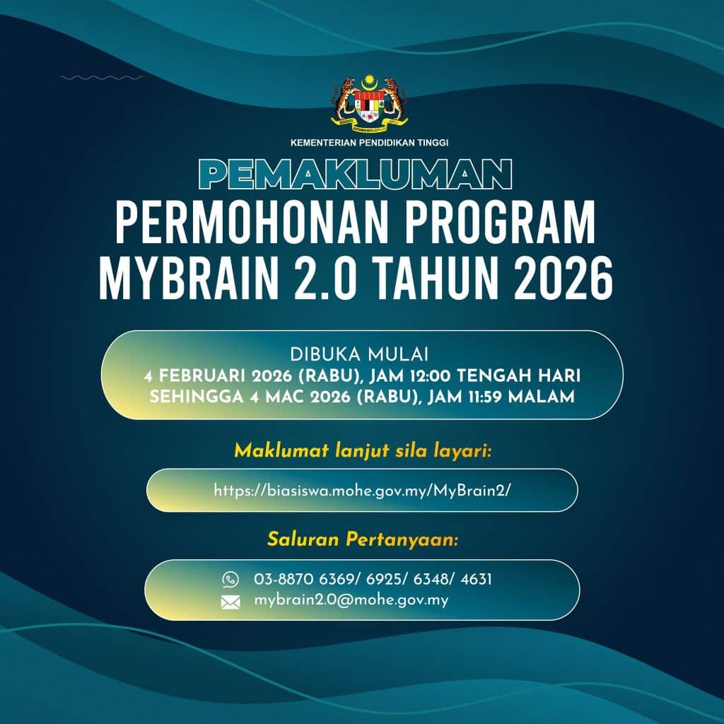 Tawaran Terhad! Permohonan Program MyBrain 2.0 2026 Dibuka Sekarang – Ketahui Cara Untuk Mohon!