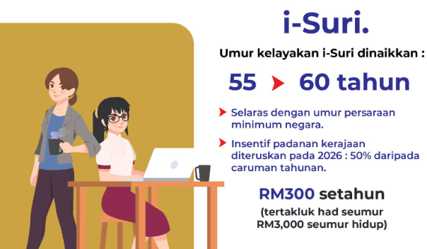 Satu perubahan yang memberi kesan besar kepada suri rumah ialah lanjutan had umur kelayakan i-Suri daripada 55 kepada 60 tahun.