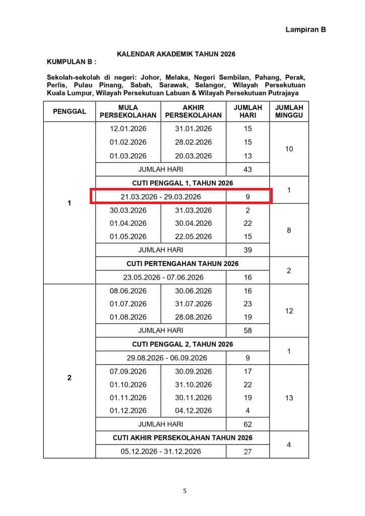Yang menjadikan Tarikh Cuti Umum Hari Raya Aidilfitri 2026 Malaysia lebih signifikan ialah penyelarasannya dengan Cuti Penggal 1 dalam Takwim Akademik 2026/2027.